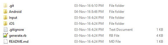 Input. This folder contains all the configuration of the app that we will work with right now. generate.rbThis will create the generate the source code of the app in the next lecture (Part 4), once we're done with the initial configuration. The rest is not really important: